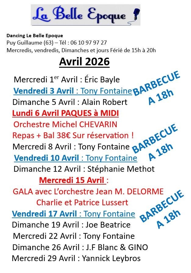 La Belle Époque vous invitent à venir danser avec TONY FONTAINE Soirée Barbecue et Année 80'S